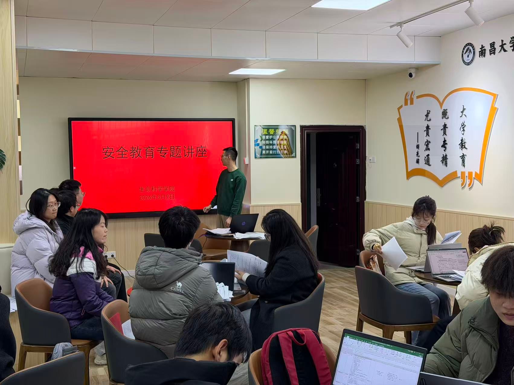 为深入贯彻落实学校 2026 年春季 “安全教育周” 活动部署,切实筑牢研究生校园安全防线,增强安全意识和应急避险能力,3月9日,南昌大学生命科学学院各研究生班级在辅导员的组织下,召开春季 “安全教育周” 主题班会。