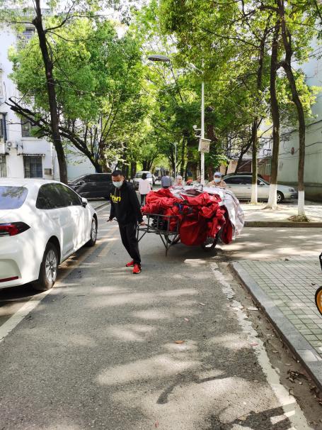 科研助理关乐积极参与前湖校区北院的志愿工作,服从上级安排,做好信息登记,辅助医护人员快速、有条不紊进行核酸检测;此外,科研助理常凯乐和姚璐每日参加送餐志愿活动,将饭菜及时送到同学手中是他们最开心的事。