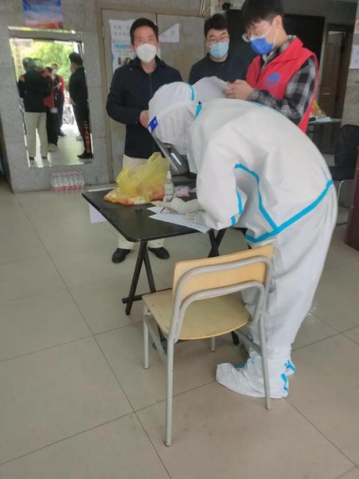 赵大显同志提前一天在核酸检测场所进行布置,并在核酸检测当天在各楼栋召集社区居民。