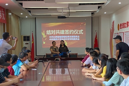 教工第一党支部充分发挥基层党建的核心引领作用,根据校院两级党委工作要求,打造创新理论学习方式、创新先锋领跑方案和创新支部建设方法,以党委引领、支部落实、书记负责、全员参与的形式开展党建工作部署的落实。根据上级要求,支部严格执行学院的“六个一”工程,切实抓好“三会一课”,主题党日也进行的有声有色,如清明祭扫英烈,前往方志敏同志纪念馆来一场别开生面的党课;前往于都接受革命传统教育;参观小平小道陈列馆,聆听邓小平同志在江西的故事,缅怀伟人丰功伟绩,开展主题教育活动;参观南昌党章纪念馆,沿着革命先辈的足迹,触摸历史时空,感悟初心使命。支部还充分利用“学习强国”平台,落实党员的日常学习,坚持学习强国积分周报制,将党员教育全方面多角度铺开,目前支部学习热情高涨,连续七个月学习参与度100%,人均周增长300分以上,年人均增长16500分,目前支部3万分以上17人,其中4万分以上7人,学习情况在全院支部中名列首位,在全校教工支部亦名列前茅,这一举措不仅提高了党员理论素养,也提升了支部战斗堡垒作用。此外,支部积极构建互动互带、优势互补、资源共享、共同发展基层党建新格局,在支部与基层党组织的合作和交流过程中,与此同时,支部先后与江西省植保植检局党支部、彭泽县龙城镇南阳村党支部和庐山西海风景名胜区柘林镇易家河村委员会确立支部共建,并举办了党建活动,既增进了解,又促进了科技帮扶的深入,获得基层的好评。
