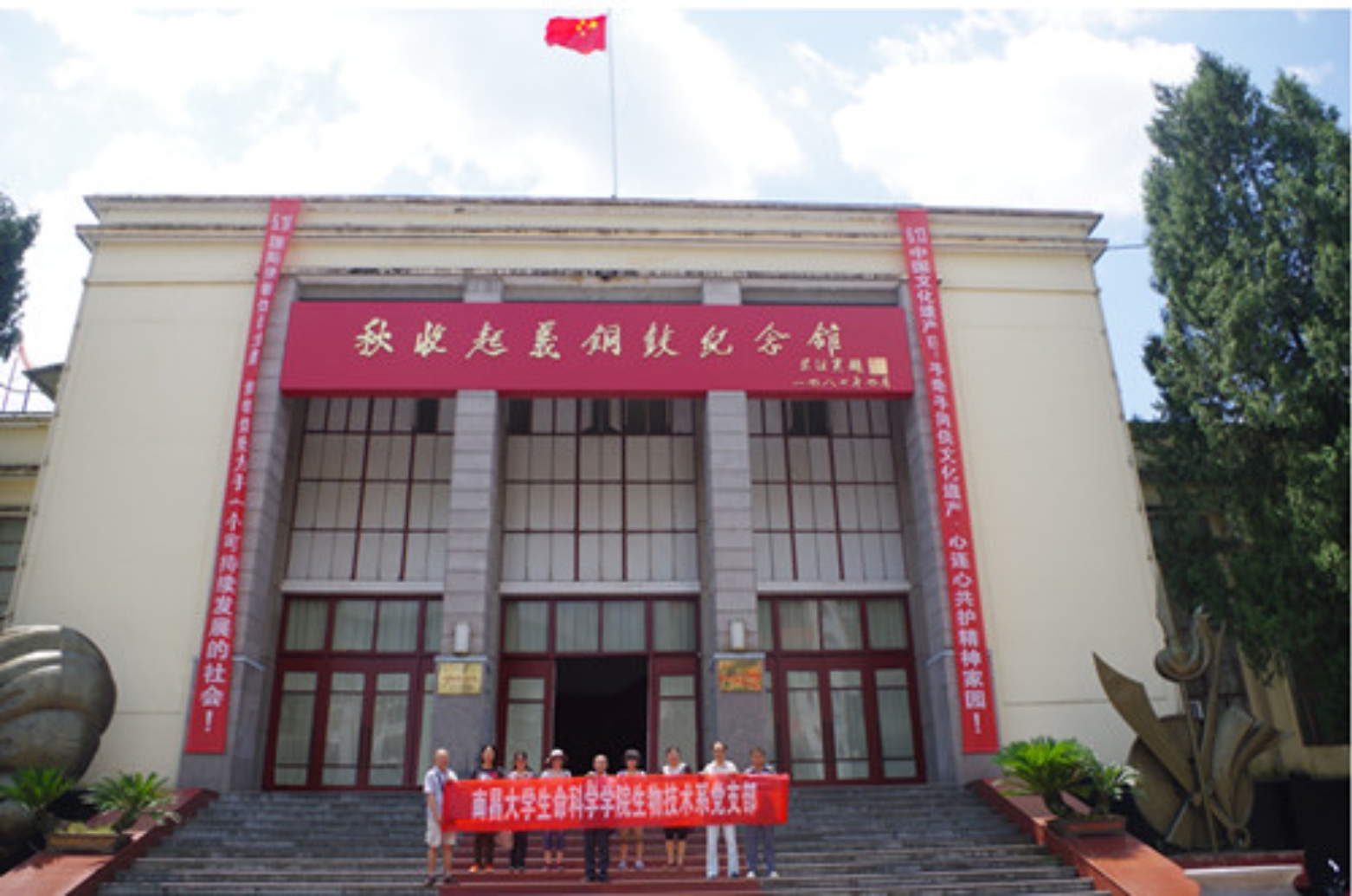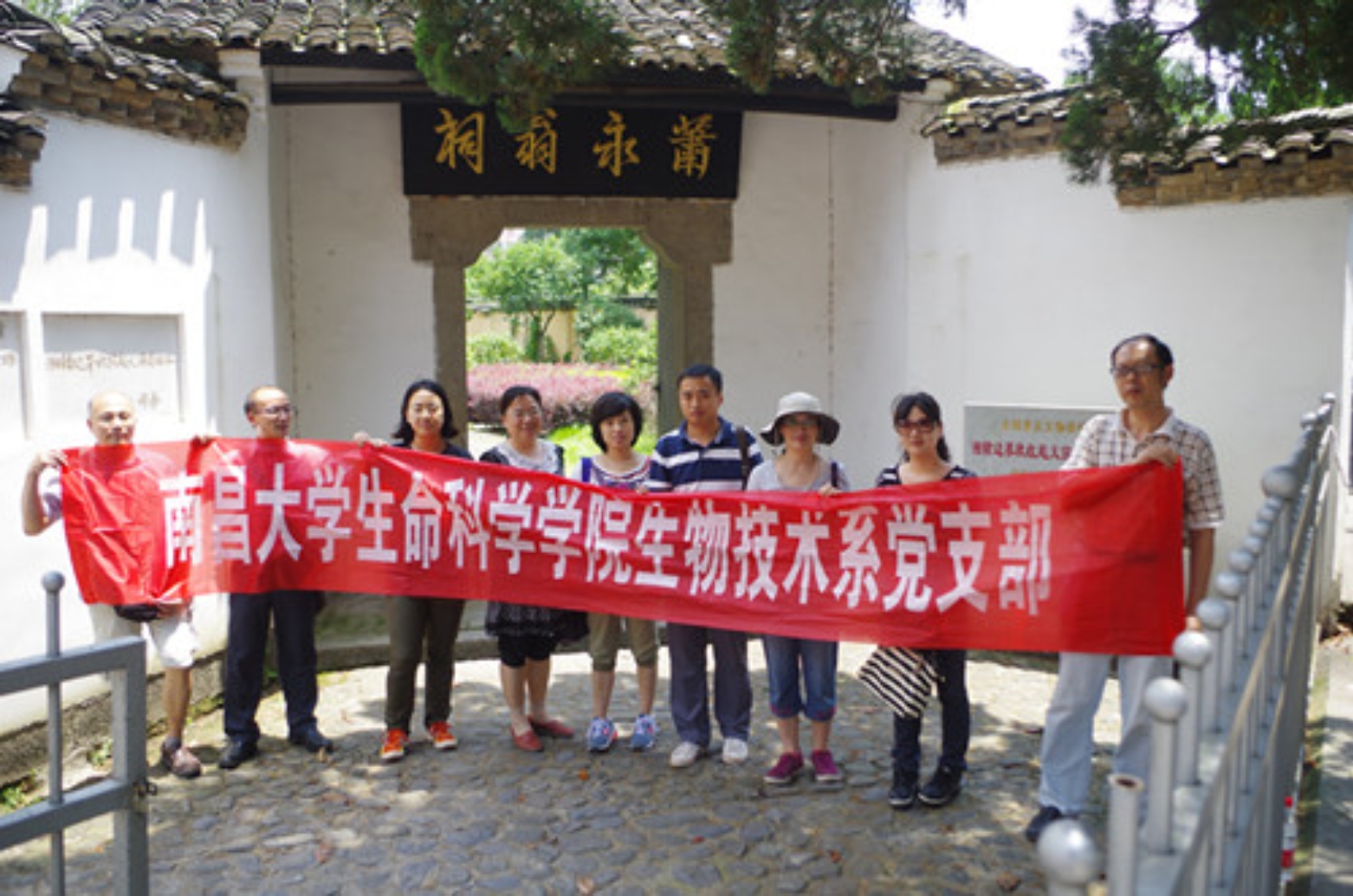 为迎接中国共产党建党94周年,生物技术系党支部教工党员一行9人于2015年6月27日来到位于江西省宜春市铜鼓县城西门肖家祠旁的秋收起义铜鼓纪念馆参观学习,重温了毛泽东同志亲自在铜鼓领导秋收起义的光辉历史,学习了毛泽东秋收起义在铜鼓的“三个第一”、“两个起点”的史实:创建了我军第一支人民军队(中国工农革命军第一军第一师),创办了第一个新兵训练处,打出了第一面标有“中国工农革命军”番号的军旗;是中国革命转折的起点和毛泽东军事思想形成的起点。