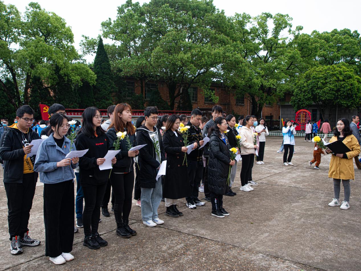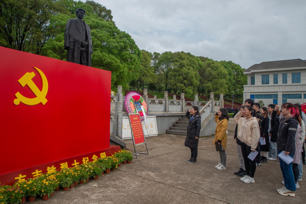 方志敏烈士铜像前,由支部书记甘丽娇组织,在场全体党员怀着对革命烈士的崇高敬意与深深哀思,行鞠躬礼、默哀、敬献鲜花,肃穆进行祭奠英烈仪式。随后,学院党委书记谢春华带领大家重温入党誓词,并为大家上了一堂生动的微党课。“作为当代大学生,一定要牢记新中国的来之不易、红色政权的来之不易、今日幸福生活的来之不易。”党员们在聆听受教中,认真思考党的光辉历程,感悟天地英雄正气,万古中国忠魂,决心要以史为鉴,继承和发扬革命烈士精神,传承红色基因,投身中国特色社会主义伟大事业,成为国之栋梁,