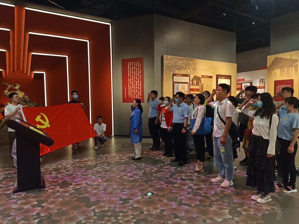 最后,师生们在学院党委书记谢春华的带领下,向党旗进行了庄严宣誓,重温了入党誓词。通过此行,学院把开展党史学习教育与落实习近平总书记关于“推进红色基因传承”的重要要求结合起来,在大力开展现场教学中扎实推进学史明理、学史增信、学史崇德、学史力行,取得积极成效。