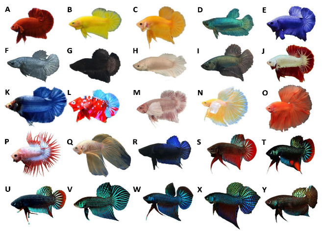 (本研究中所利用到的暹罗斗鱼品种图示)