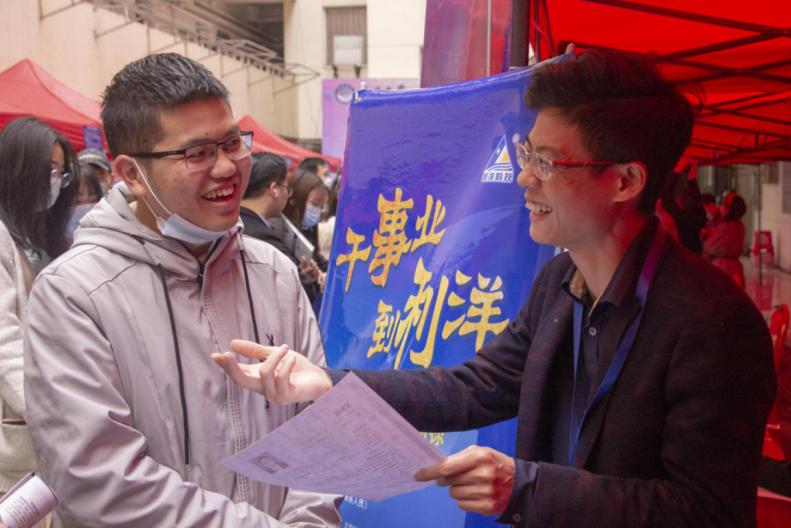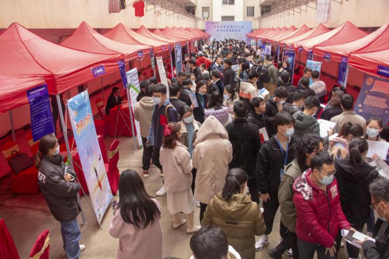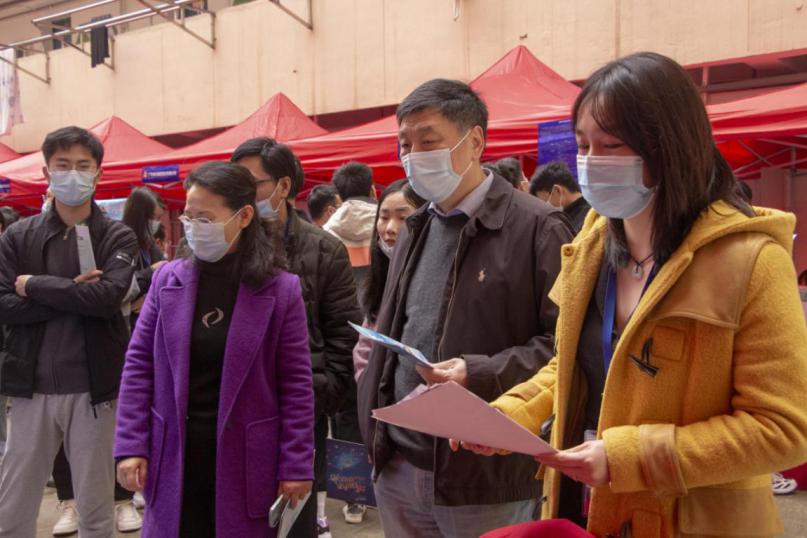 (生命科学学院就业指导社记者 温可心)为拓宽毕业生就业渠道,进一步加强毕业生、用人单位和学校三方交流联络,2021年3月12日,生命科学学院于南昌大学前湖校区修贤2栋西侧天井举办2021届毕业生专场招聘会。本次专场招聘会共有26家省内外知名企业前来我院招贤纳士,到场本硕博学生四百余人。南昌康桥健康体检中心有限公司、广东海大集团股份有限公司、广州利洋水产科技股份有限公司、四特酒有限责任公司等26家企业齐聚招聘会现场,提供生物类、水产类、食品类、医学类等领域数百个工作岗位。