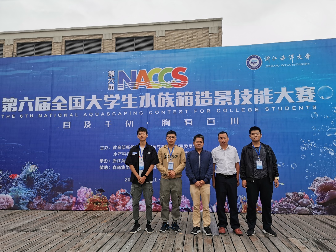 2019年10月12-13日,由教育部高等学校水产类教学指导委员会和水产科学国家级实验教学示范中心联席会主办,浙江海洋大学承办的第六届全国大学生水族箱造景技能大赛在美丽的舟山举行。来自中国海洋大学、南昌大学等全国46所高校300多名参赛选手组成的183只队伍参加了本次大赛;南昌大学生命科学学院首次派出以卓越水产养殖专业为主的3名学生组成3支代表队参赛,教育部水产类教学指导委员、我院水产科学系赵大显主任作为嘉宾出席、我院水产科学系简少卿担任指导老师。
