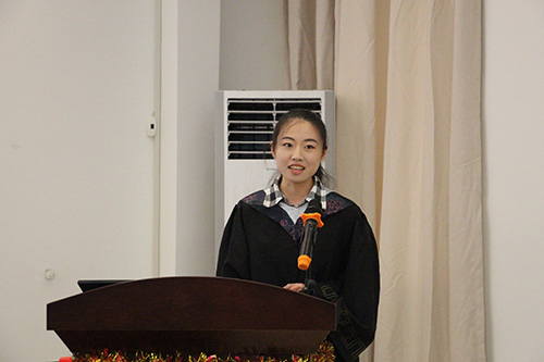 随后,来自水产养殖学141班的周妍同学作为优秀毕业生代表上台发言,她回顾了自己的4年校园生活,以深情的话语抒发了对母校和老师的感恩与祝福。接着,教师代表邹志文老师发言,“生活就像新闻联播,不是换台就能躲藏,就像青春不可跨越,身体和精神上的一次次冲击洗礼让我们变得强壮;一切经历都是时光的宝藏,无悔的青春伴随着我们成长。”邹老师引用乔布斯的名句-- “求知若饥,虚心若愚”,以幽默诙谐的话语表达了对同学们的眷恋与真切祝福。