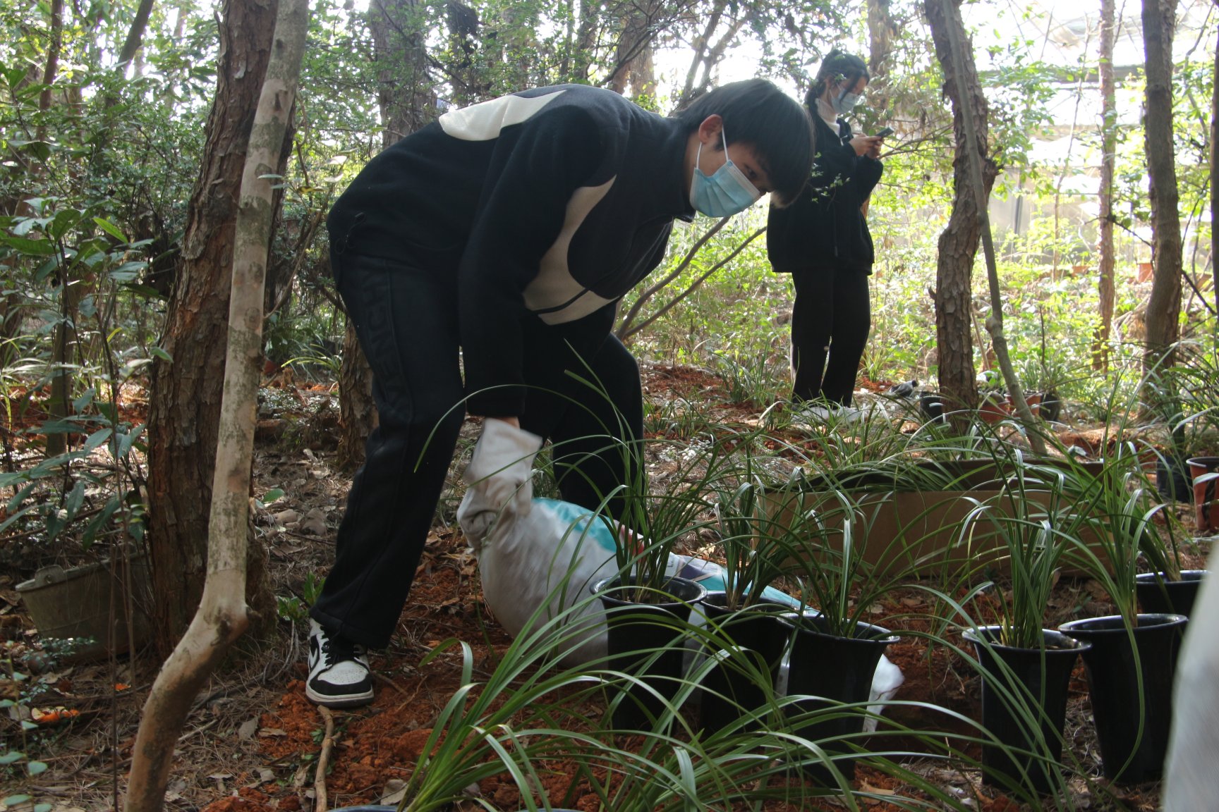 27日下午,暖阳和煦,同学们按时到达“上课地点”。杨教授详细地向大家分享了有关兰花的知识,介绍兰花种植过程,并细心地提出注意事项。“兰花对光照极为敏感,不耐晒,也不能种在极为阴暗的环境,否则会影响兰花的生长和开花……”不同于以往坐在教室从书本上汲取知识,身处自然之中的同学们以兰苑为教室,用兰花作课本,所学到的知识也在亲身亲历的劳动中得到巩固与升华。