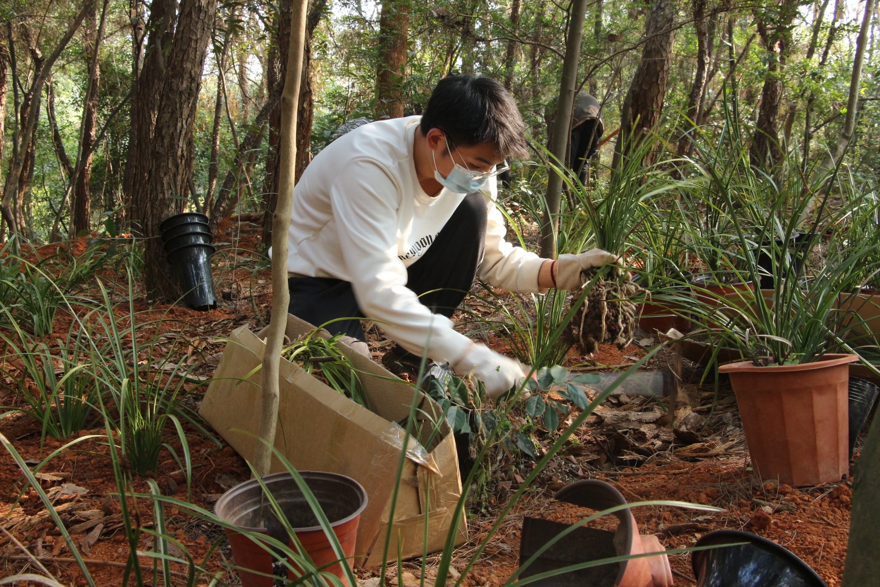 杨教授带领同学们深入目标种植地,示范兰花的种植过程,等到同学们都掌握要领后,便协助大家一同种植。同学们各司其职,或拉车运肥,或填土种苗,或浇水施肥。在大家的辛勤劳作下,兰花的种植任务圆满完成,本就处于复苏中的大地又增添了不少生机。