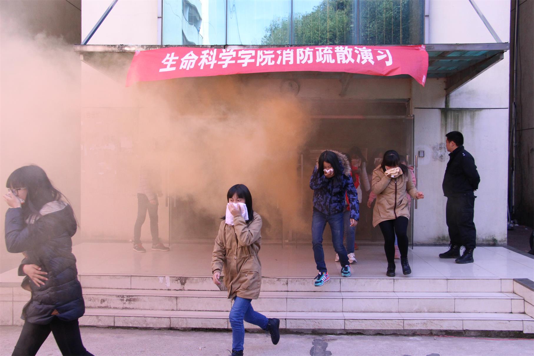 本次消防演练由生命科学学院党委副书记陈志高、行政副院长万丽丽担任现场指挥,校保卫处消防科在演练现场全程指导,院学工队伍、学生会工作人员现场组织协调疏散。