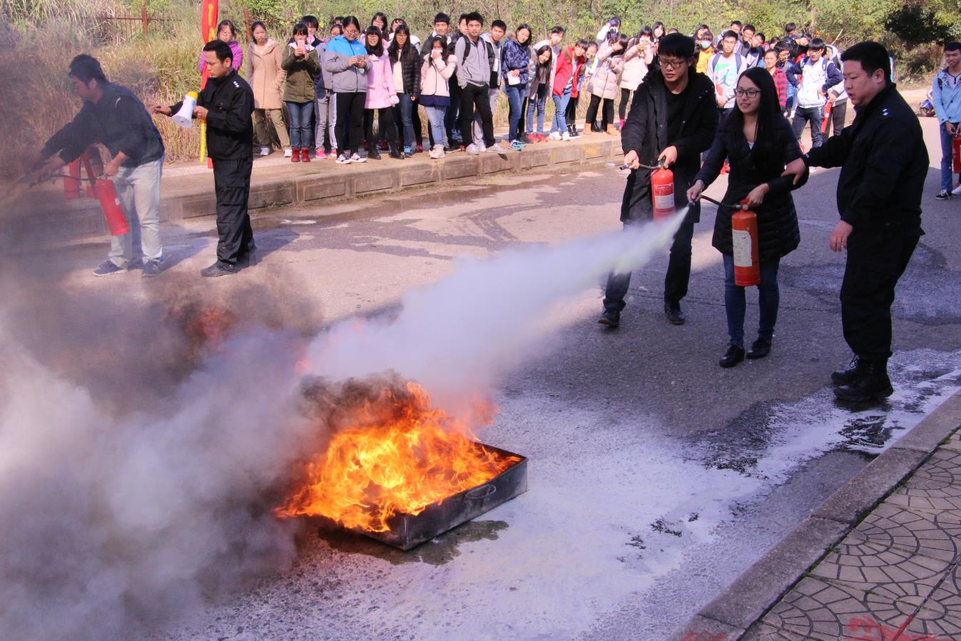 在各班报告集合情况并清点人数后,全体同学前往留园学习使用干粉灭火器。“119”消防连工作人员进行讲解并现场演示了灭火器的使用方法。随后,本次演习现场指挥小组的老师和20名学生依次使用灭火器进行灭火练习,进一步学习灭火关键流程。