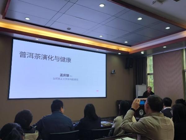 孟教授以“普洱茶的演化与健康”为题,向参会师生分享普洱茶的历史和他们团队在茶叶的渊源、鉴定、应用等方面以及其他小分子的相关研究。孟教授首先从茶的两方面为大家讲述了茶的特性:一方面茶作为生活资料--“柴米油盐酱醋茶”,另一方面茶作为文化载体--“琴棋书画诗酒茶”。孟教授的研究团队通过对茶历史文献的梳理和现代科学分析方法的应用,揭示了不同茶从古至今的演化轨迹,尤其是普洱茶。基于GC-MS检测技术及代谢组学,他们发明了一套茶叶指纹系统,能系统的鉴定茶叶的品种,产地甚至年份。茶香和滋味是涉及到数百种物质的复合体验,其团队基于大数据、大样本构建出了典型茶香和滋味感受模型,可根据特定风格快速生产拼配茶。