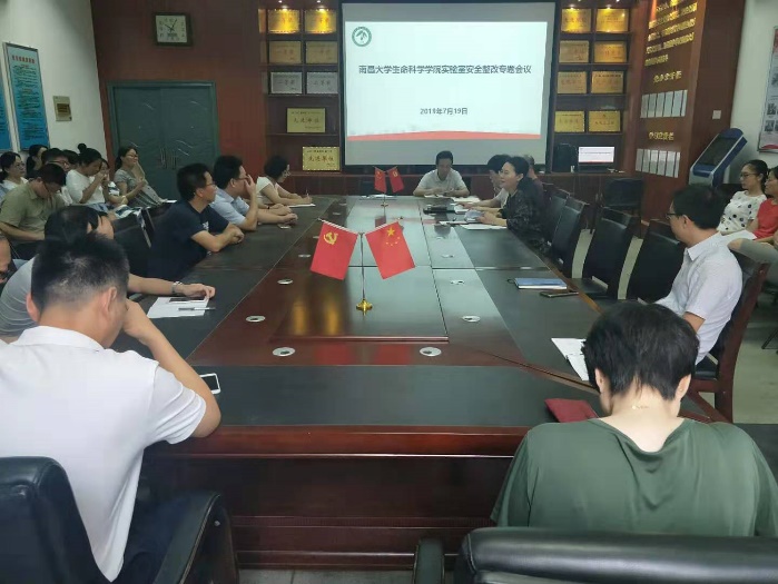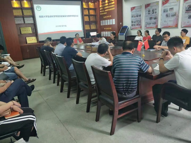 2019年7月19日上午10时,生命科学学院于理生楼B102召开实验室安全整改专题会议,学院党政领导班子成员及各实验室安全负责人参会。