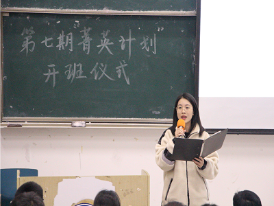 19时整,“菁英计划”开班仪式在大家的期待中拉开帷幕。秦寒同学宣读活动项目、考核方案和规章制度,使学员们对本期“菁英计划”有了初步认识,随后有请陈书记上台发言。