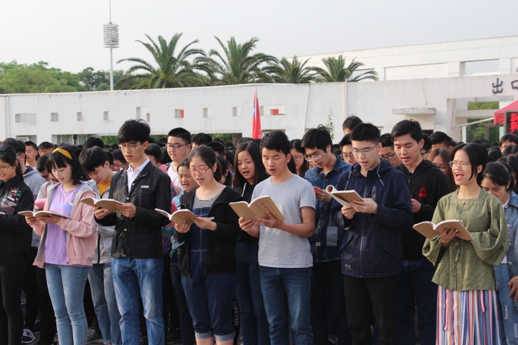 随后,喻晓社、黄恩华、黄细嘉三位领导分别为出席升旗活动的班级赠出《红色家书——革命烈士书信选编》一书,旨在传承革命精神,强化在校学生的家国意识,推进理想信念教育。接着,全场在主持人的引导下诵读赵一曼同志的家书《希望不要忘记你的母亲是为国牺牲的》和殷夫同志的家书《别了,哥哥》。五四青年节,我们在随风飘扬的鲜艳的五星红旗下细细品读先辈烈士用热血和生命书写的红色家书,体味革命先烈的家国情怀,感受共产党人的理想信念和使命初心。