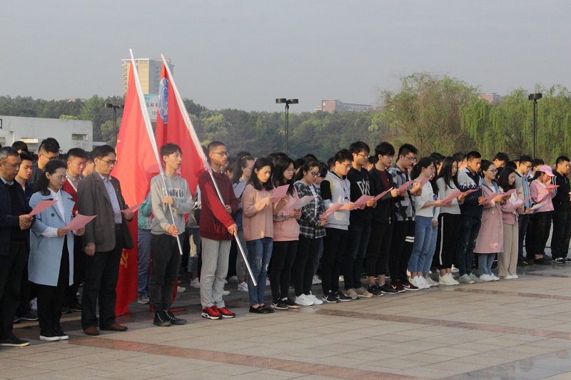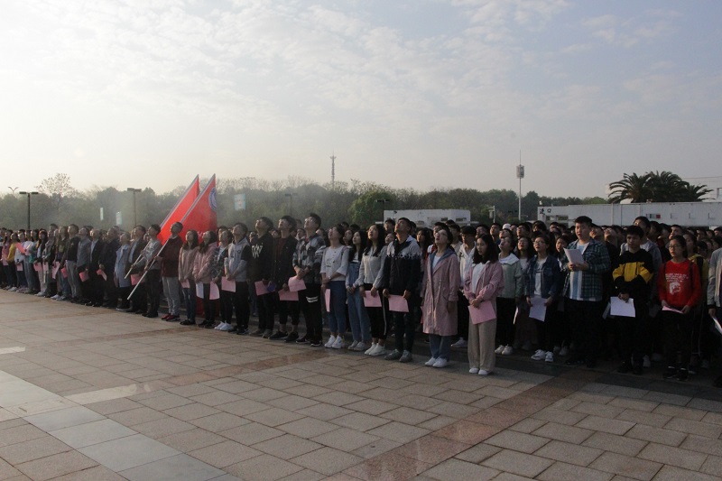 (生命科学学院记者 王思妤)2019年4月8日7:00,生命科学学院于前湖校区北院行政楼前树人广场,举行以“弘扬井冈山精神,传承红色基因”为主题的升国旗活动,也是传承·清明祭英烈的一项重要内容。