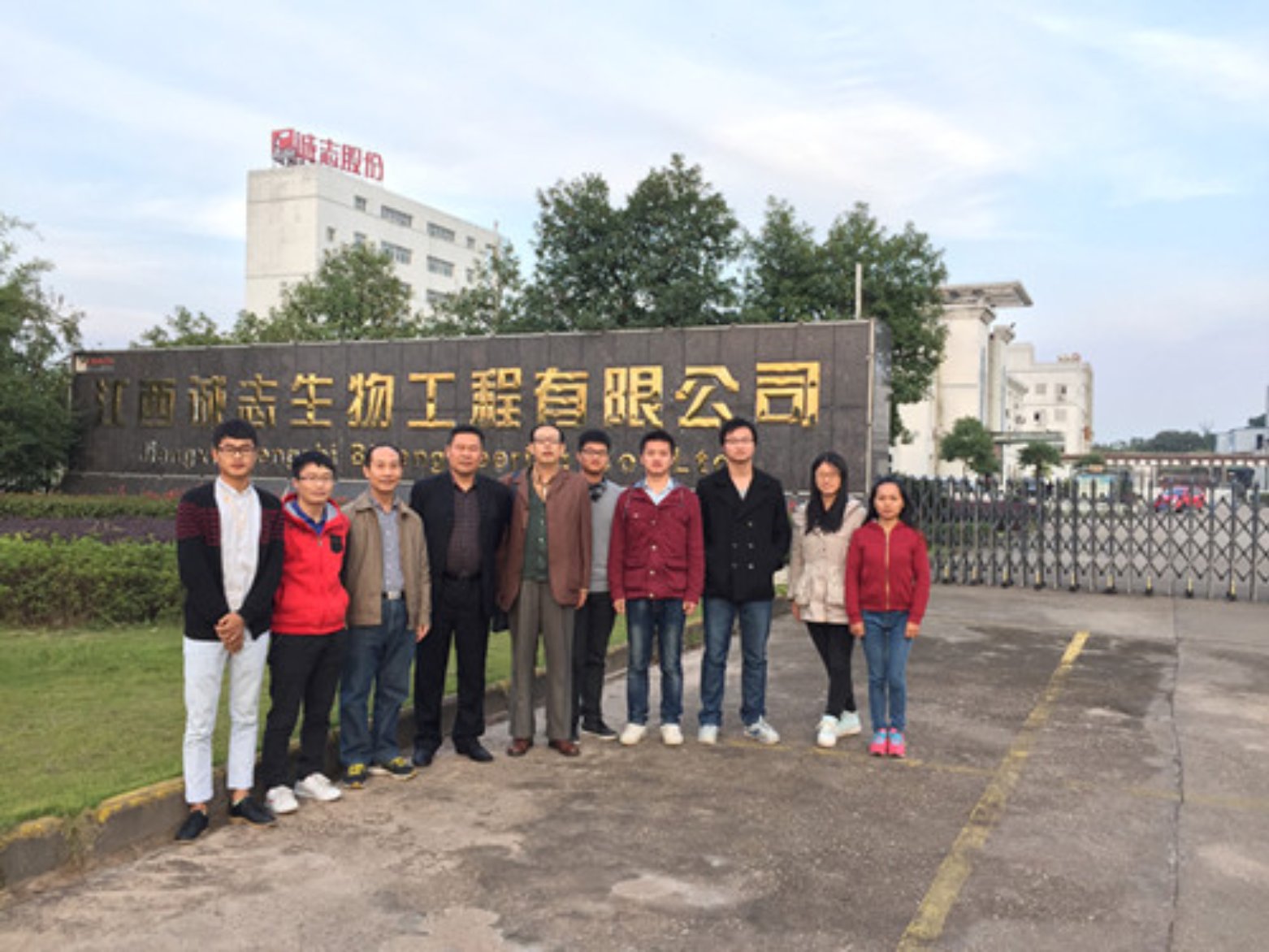 2015年11月2日,我院党委蔡磊书记一行前往位于鹰潭的江西诚志生物工程有限公司进行交流考察并看望了在此实习的2012级生物技术专业的同学们。蔡书记一行在公司谭总经理和我院实习带队老师郑雄敏副教授带领下,实地参观考察了公司各车间生产线,仔细询问了同学们实习的感受,并就如何进一步加强了我院与公司合作进行了深入交流探讨。