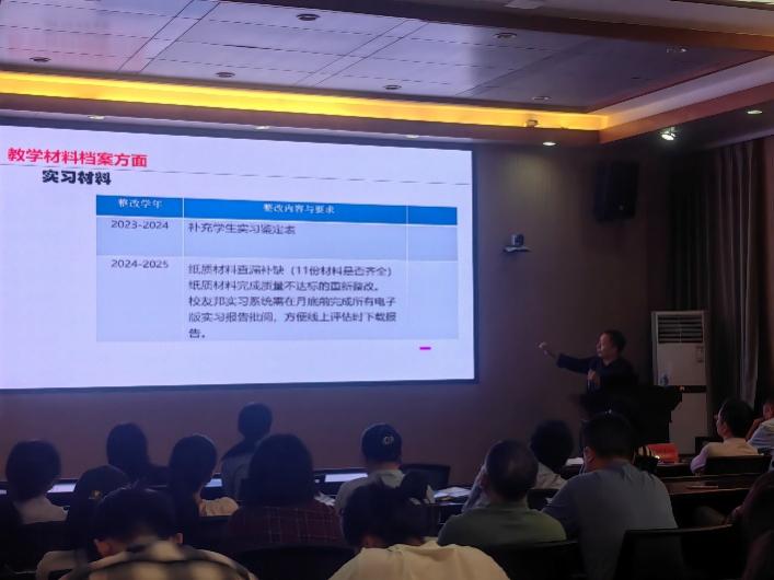 随后,学院分管教学工作的党委委员王尚洪对审核评估整改工作进行了具体安排和布置,梳理目前存在的主要问题和改进措施,要求老师们要切实做好自评估各项各项教学档案材料的整改工作,确保准确、完整、规范。