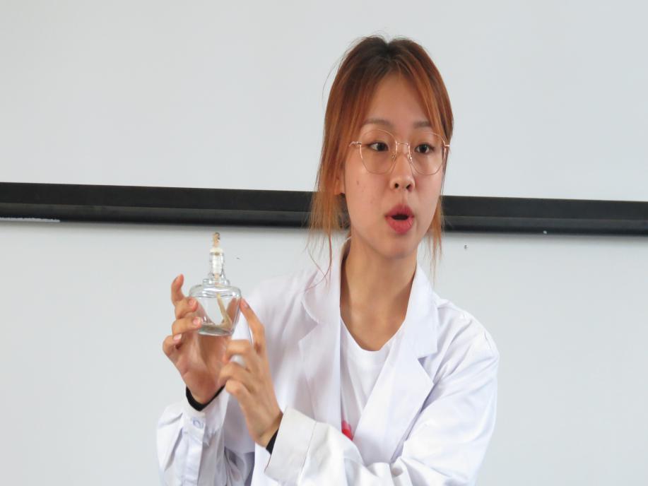 实践团队成员带着各式各样的实验仪器走入了教室,孩子们目不转睛地盯着这这些瓶瓶罐罐,充满了对知识的渴望。“我们要带几个小朋友去摘叶子,谁愿意来啊?”大家纷纷举手,跟随实践团队成员古金柱同学取材。古金柱同学讲解着叶子的结构以及所需要的种类,孩子们找寻着自己喜欢的叶子,很快就回到了教室。