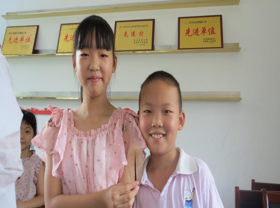 童真的孩子遇上有趣的实验,欢笑声在教室中此起彼伏。破碎的叶子,脏兮兮的衣服仿佛成为了孩子们的勋章,经过几次失败,不少孩子已经熟练地掌握了这项技术,做出了精致的叶脉书签。“这书签我要送给我的姐姐。”“我要把叶子拿给我的奶奶看,她会很高兴的。”拿着亲手制作的书签,留守儿童们首先想到的是一直陪伴自己的亲人,令每一个团队成员为之动容。实践团队的到来给予了他们很多情感上的温暖和眼界上的开拓,看到这些大家灿烂的笑容,团队成员仿佛和收到书签的孩子们一样,幸运而又幸福。