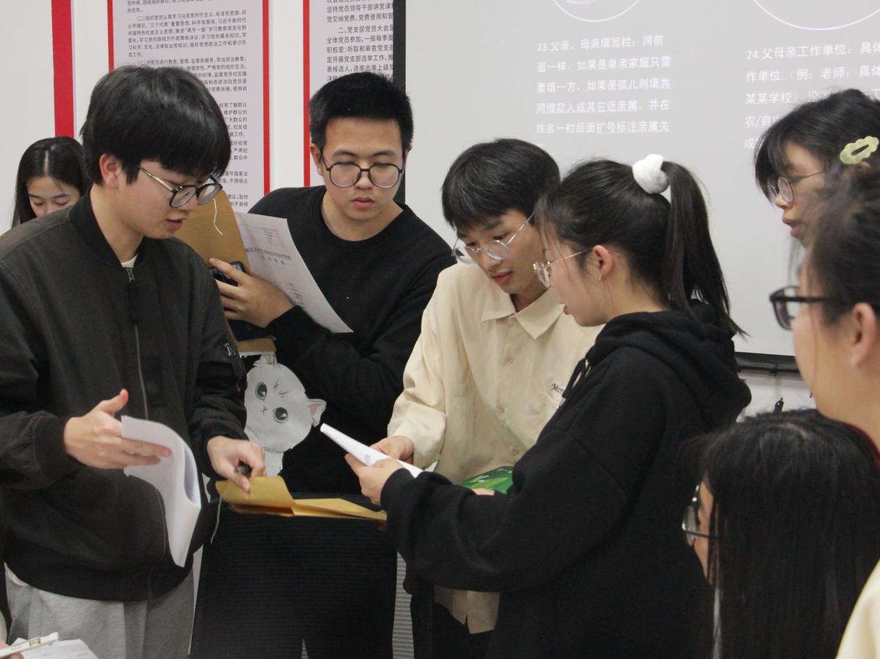 学生资助助理孙文萱向同学们讲解如何正确填写信用档案及档案袋。为确保自己的档案填写无误,同学们也积极向其和资助中心工作人员询问一些细节。资料填写完毕,同学们仔细阅读承诺书,在上面郑重地签下了自己的名字并按上手印。至此,“首贷生诚信建档会”圆满结束。
