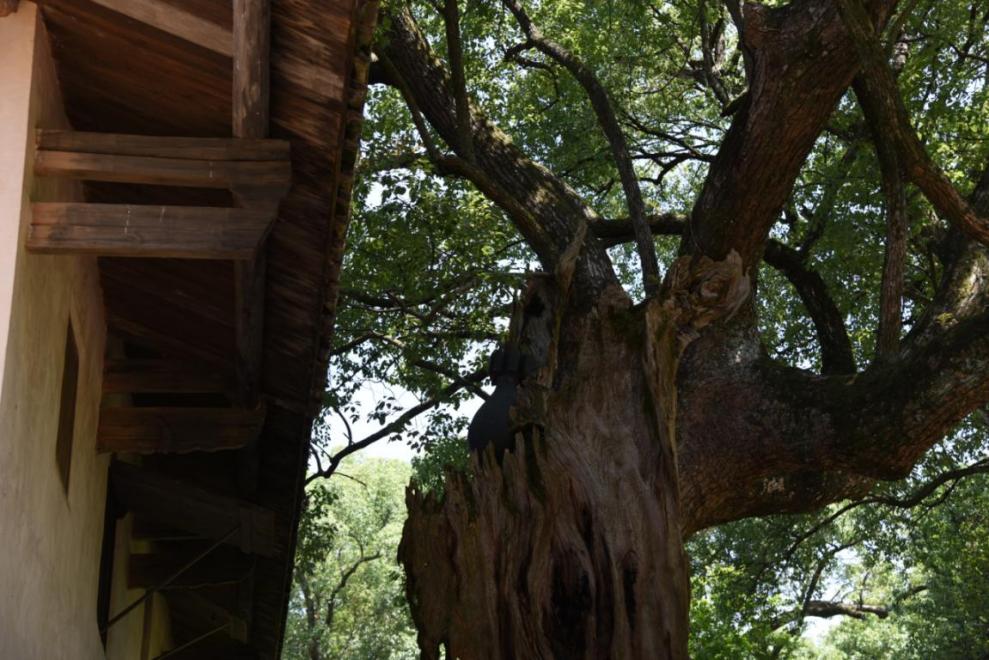 在樟树的不远处就是毛泽东同志的旧居,当年毛主席使用过的会议桌、旧桌椅等依然保持着几十年前的旧貌。简朴的家具给队员们的是一种强烈的震撼和无尽的遐思。在旧居的一楼有一个天窗,是毛主席了解到群众室内阴暗生活艰辛,吩咐警卫员和木匠为住户特意修改的,从这个小小的“天窗”就能感受到共产党人和人民群众之间的血肉联系和水乳交融,也正是因为我们的党深深扎根于人民群众之中,全心全意为人民服务,真真正正地做到权为民所用、情为民所系、利为民所谋,才能得到群众最真挚的拥护,才能创造革命胜利的奇迹。