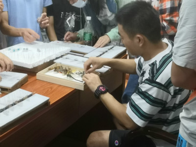 9月10日8时,同学们于会议室学习整理、鉴定和制作贝类、昆虫、鱼类等类群标本,动物学实习也宣告结束。当日下午,同学们集合前往水口,植物学实习随之开始。在李恩香等老师的带领下,同学们在五马朝天黄洋界、荆竹山和领袖峰等地认识到各种各样的植物,从裸子植物到被子植物、从木兰科到菊科都有所了解。期间,每天晚上的八点,安排大家参与采集标本的鉴定与压制,进一步巩固白天所掌握的知识。