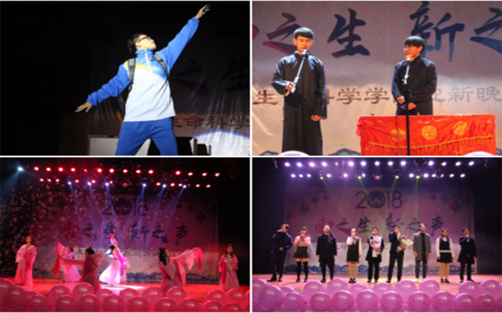 (生命科学学院学生会 记者 谢晓莹、周思莉)流光溢彩迎新夜,心心连新齐飞扬。2017年12月23日19时,生命科学学院在音乐厅举办以“南之声,新之声”为主题的迎新晚会。本次晚会由南昌大学生命科学学院主办,生命科学学院团委、学生会承办。出席晚会的嘉宾有生命科学学院院长田小利,党委书记蔡磊,党委副书记陈志高,行政副院长万丽丽,学院部分老师以及各兄弟学院学生会主席。