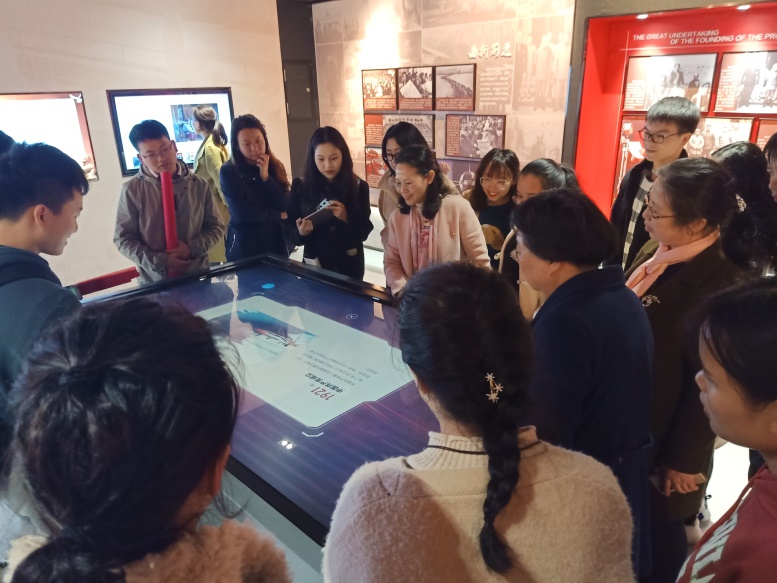随后,师生们在讲解员的带领下,参观了馆内展示项目,领略了党带领人民从站起来、富起来到强起来的伟大飞跃历程,特别是党的十八大以来,党着眼于实现“两个一百年”奋斗目标和中华民族伟大复兴的历史使命,在一系列治国理政新理念新思想新战略的指导下,砥砺奋进,硕果累累,深切感受了党的伟大。