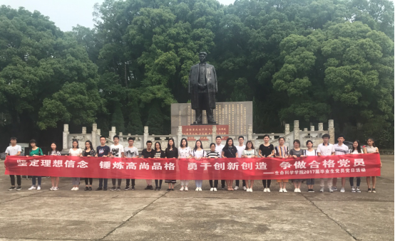 (生命科学学院本科生党支部 崔湘培)2017年6月20日9时30分,生命科学学院毕业班级学生党员在本科生党支部组织委员瞿玮老师的带领之下,来到了南昌方志敏烈士陵园举行了祭扫、重温入党誓词仪式并进行了参观实践活动。