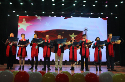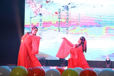 颁奖典礼后,迎新晚会开始。开场舞《icy》瞬间将全场气氛点燃,晚会也由此拉开帷幕。相声《童年趣事》作为晚会的第一篇章“笙笙鼓歌,浅唱心语”的第一个节目,以幽默的话语、夸张的动作引得现场观众爆笑不已。紧随其后的歌曲《燕窝》、舞蹈《琵琶行》为晚会点缀添彩。为庆祝中华人民共和国成立70周年,学院领导和部分青年教师表演的诗朗诵的《不忘初心,牢记使命》表达出中华儿女对祖国母亲深深的依恋之情,同时也生动地诠释了共产党人的初心和使命。