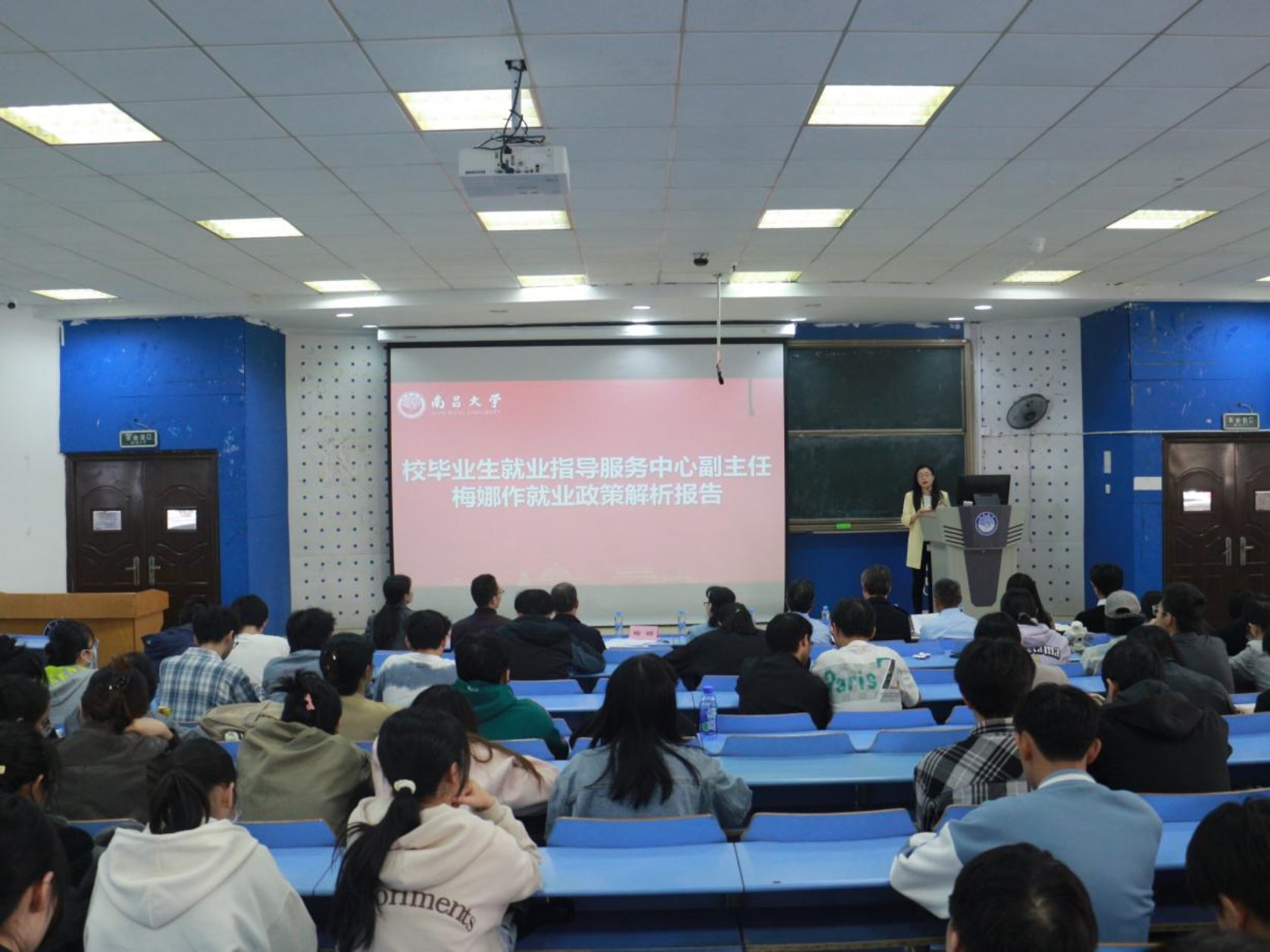 校毕业生就业指导服务中心副主任梅娜为同学们全面解析了当前就业形势和政策,细致讲解了国家和学校的系列帮扶政策,并利用详实数据和生动案例进行了就业观和择业观教育,引导大家全面看清就业形势,把握就业机会。