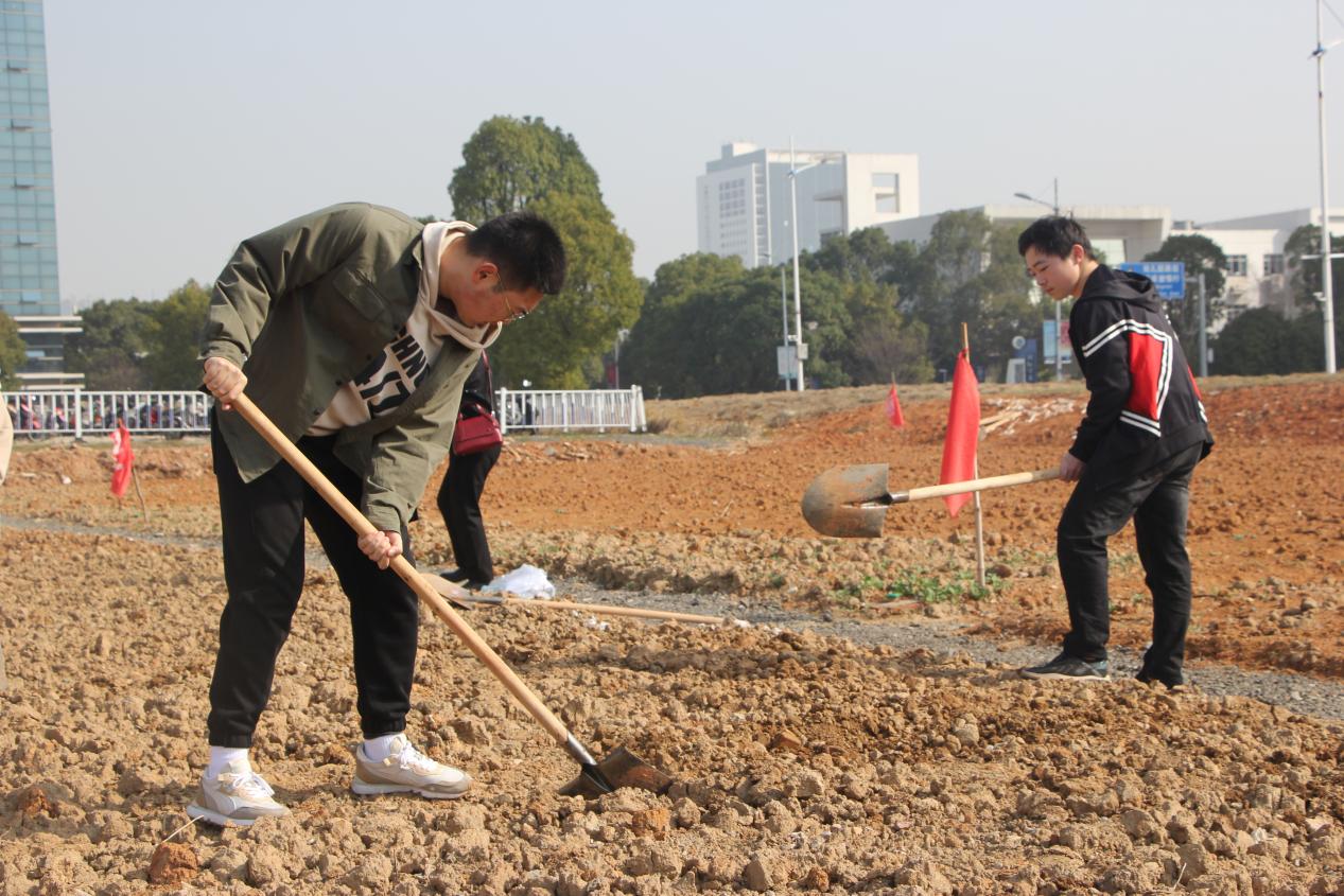 同学们摩拳擦掌,带好手套,拿起工具,起劲的干了起来。有的同学经验丰富,告诉其他同学如何翻地最省力;有的同学掌握不好技巧,一旁的老师便悉心指导;有的同学干的满头大汗,脸颊通红,却仍沉浸在劳动的乐趣中无法自拔。