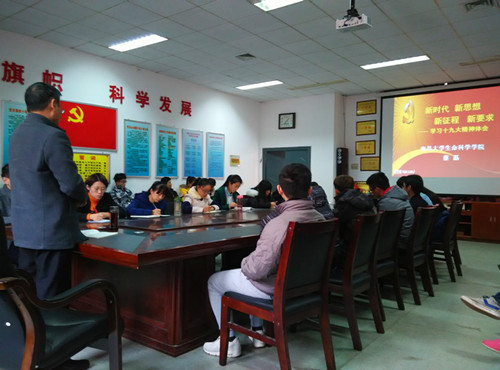 为及时学习宣传贯彻党的十九大精神,按照学校有关要求,12月7日12时,生命科学学院党委书记蔡磊对全体研究生党员进行了十九大精神集中培训,讲授了一堂题为“新时代 新思想 新征程 新要求”的党课。2017级研究生辅导员王静老师以及全体研究生党员参加了此次培训活动。
