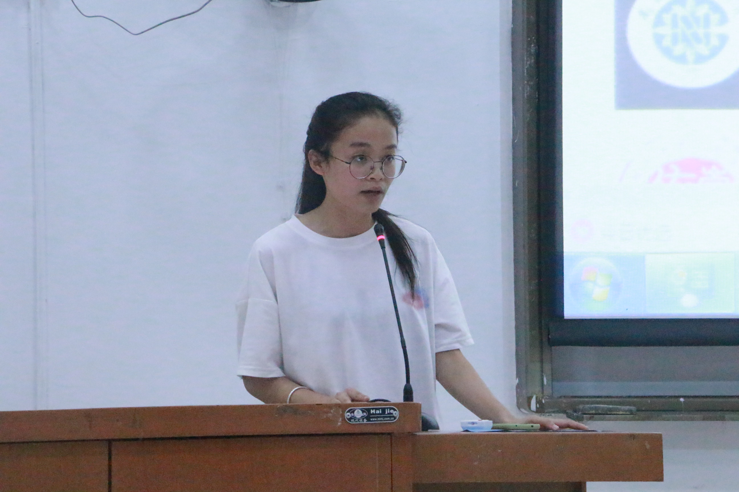 提问环节中,刘小雪同学解答了己有关于注册或登录pu口袋校园的过程中遇到的困难与问题,她用心的回复赢得了全场新生热烈的掌声。