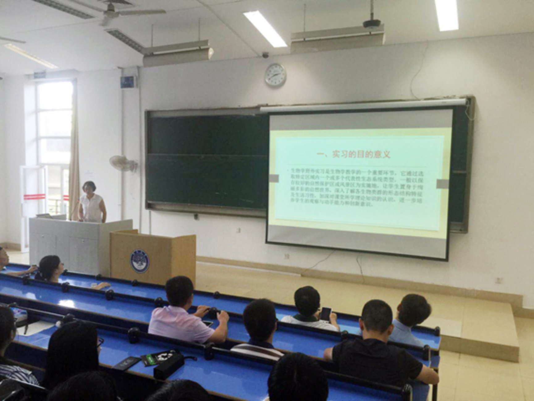 (生命科学学院学生会 记者 谢晓莹)金秋开学季,九月少年时。为确保2017届学生生物学野外实习的顺利进行,提高同学们对实习的兴趣,并且深入了解实习的内容以及安排,生命科学学院于2018年9月2日下午2点30分整在主教101教室召开生物学野外实习动员大会。大会由我院动物学优秀老师欧阳珊主持,到场的嘉宾有我院院长田小利教授、井冈山风景区领导以及我院其他十余位动、植物学老师。