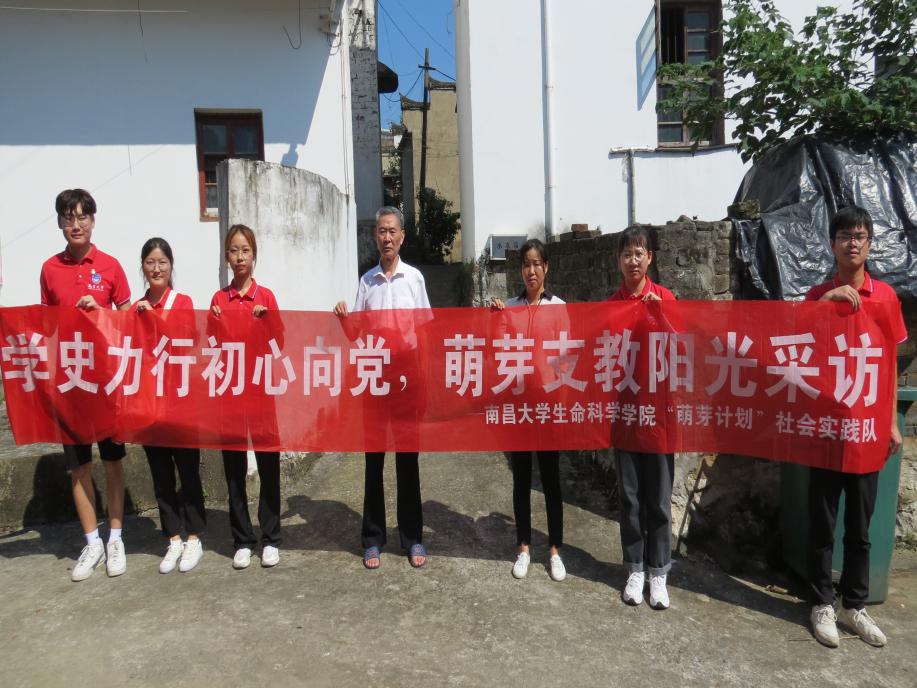 7月15日,南昌大学生命科学学院暑期社会实践团队在南阳村村委会成员石文燕同志的带领下,采访了南阳村获得“光荣在党50年”纪念章的两位老党员,倾听他们与党的感人故事。