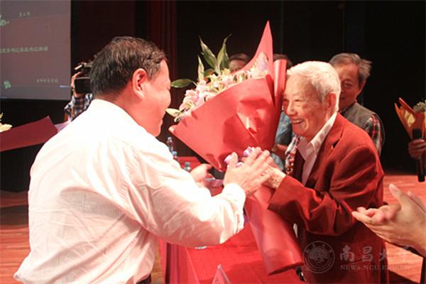 老教师代表叶居新教授回顾了75年前诞生在泰和杏岭生物科学院系的前身、根脉和基因,他创作了一副对联,表达对学院的感怀之情:“忆往昔,岁月峥嵘。求发展,系内贤达殚思极虑,励精图治。喜看,繁花争春,人才济济,桃李满九洲八方;看今朝,江山如画。创辉煌,院中同仁策马扬鞭,疾驰奋进。又见,群芳竞艳,硕果累累,业绩遍五湖四海。”