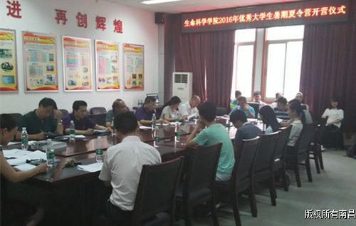 生命科学学院 宣(记者刘欣玉)6月30日下午,生命科学学院2016年优秀大学生暑期科研夏令营活动开营仪式在理生楼一楼党员活动室举行。副校长朱友林,生命科学学院相关领导、部分专业教师代表及来自全校的19位夏令营成员参加活动。仪式由副院长洪一江主持。