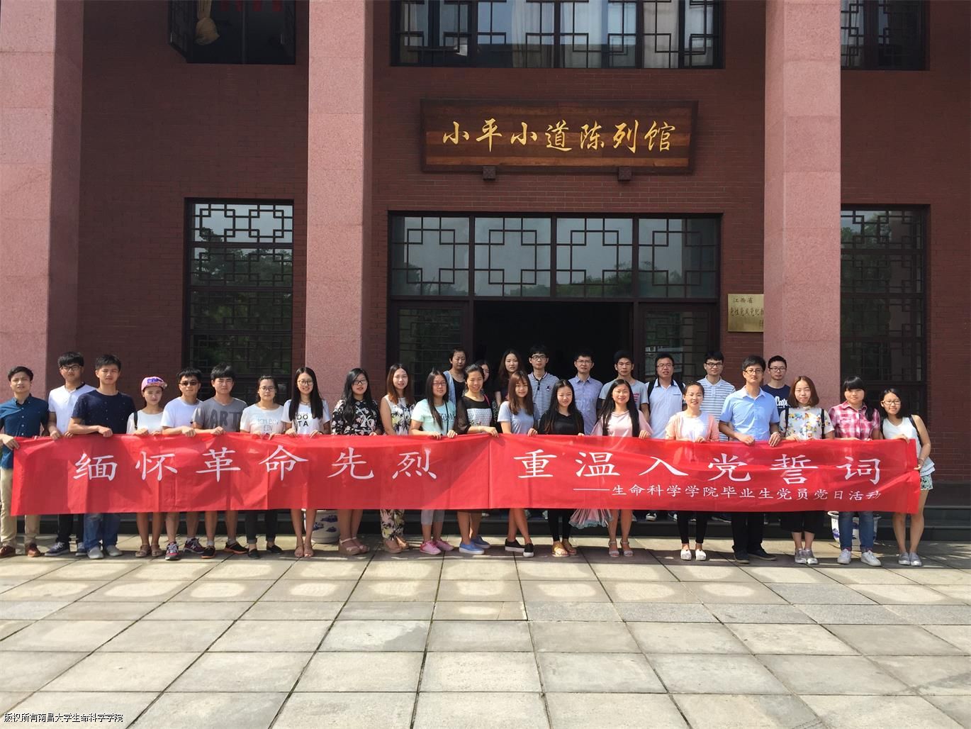 全体毕业生党员先后参观了小平小道、小平小道陈列馆等爱国主义教育基地。重温历史,每位党员都深深感受到了革命烈士的伟大精神,见证了中国共产党成长的心酸历程。展望今朝,党员们心念党章,牢记党员责任,时时处处发挥先锋模范带头作用,肩负共产党人的崇高使命。