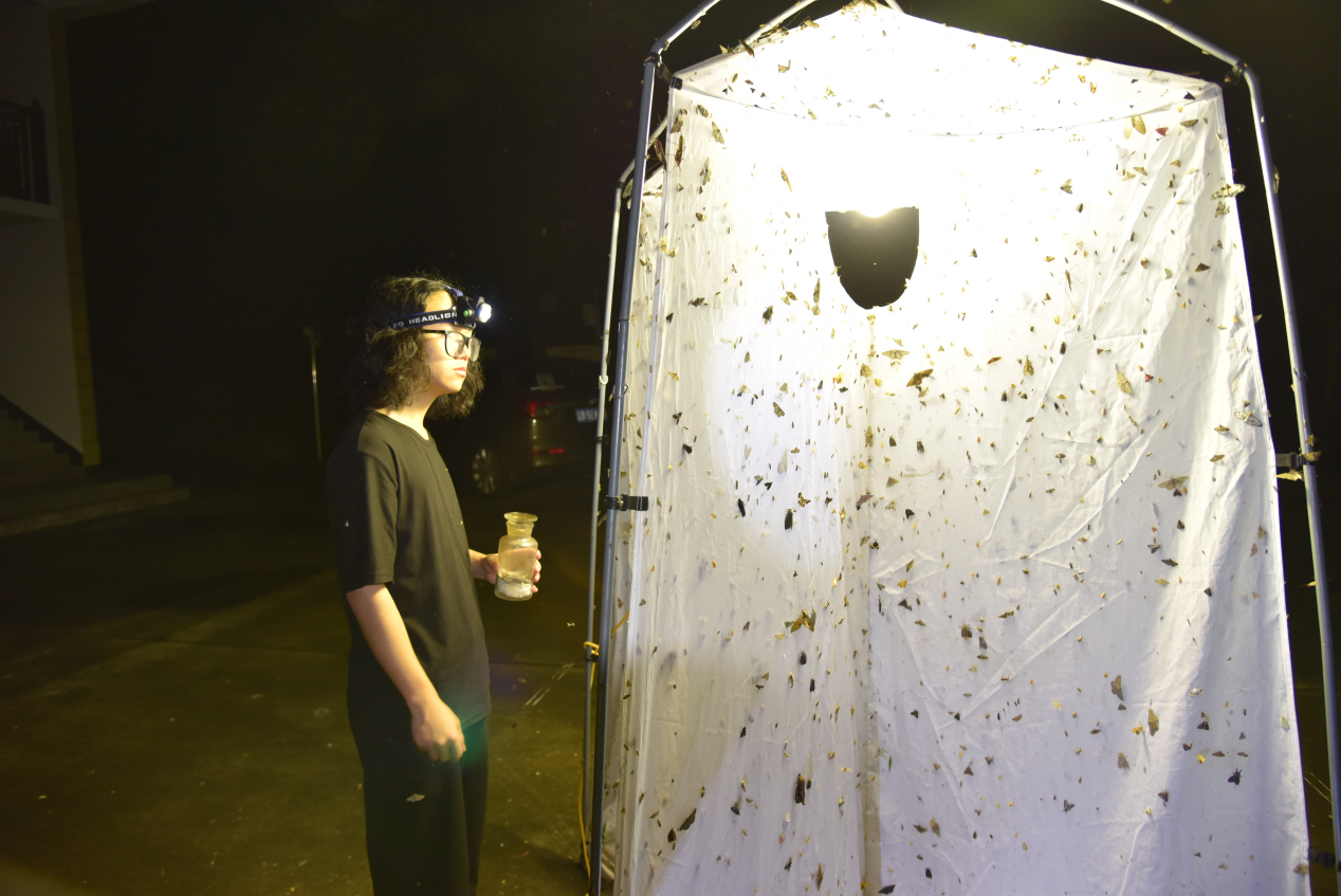 图为凌晨2时正在观测昆虫的实践队员 汪鸣飞摄
