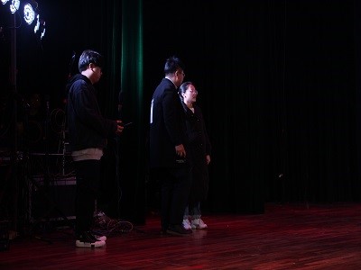 又一阵旋律响起,终章——追梦就在《解放军军歌大合唱》恢宏的乐曲声中拉开帷幕,蔡磊老师亲自上阵指挥,为同学们带来了一场艺术盛宴。《“鱼”你同行》让我们在交错纷繁的手影舞中感受时代的变迁,《伟大的党》让我们了解了中国共产党成立以来的曲折历史,压轴节目《生科disco+我们都是追梦人》更是吸引了同学们的眼球,再一次把全场气氛推向高潮。四位同学用改编歌曲《生科disco》表达了自己对生科院的深切热爱,金陆乔老师携手团学组织全体同学的合唱《我们都是追梦人》更是展现出学生干部对生科院美好未来的期许及奋力追逐生科梦的决心。主持人回到舞台,在我们都是追梦人的歌声中宣布本次迎新晚会结束。