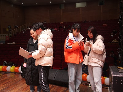 青春是一首美丽的诗,是一支动听的歌。让我们真诚地把握住它,让青春之花绽放四季,第二篇章——绽放就此翻开。《贯彻快乐》以歌声为载体,让快乐绽放;《乌龙快递》以逆行者为寄托,让真情绽放;《take a hike》以动感为源泉,让活力绽放;《歌曲串烧》以歌声为力量,让激情绽放。表演结束,朱友林教授亲自为本次盛典抽取一等奖的幸运观众,并在全场的欢呼声中与这位同学合影留念。