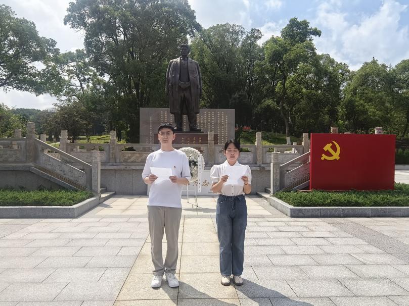 鞠躬礼毕,现场响起诵读声。毕业生党员何东宸、陈雅娟饱含深情地诵读方志敏烈士文章——《清贫》,“清贫,洁白朴素的生活,正是我们革命者能够战胜许多困难的地方!”字字句句掷地有声,跨越时空的对话,让党员们深刻体悟到共产党人克己奉公的精神内核,仿佛与烈士进行了一场灵魂的交流,进一步坚定了理想信念。