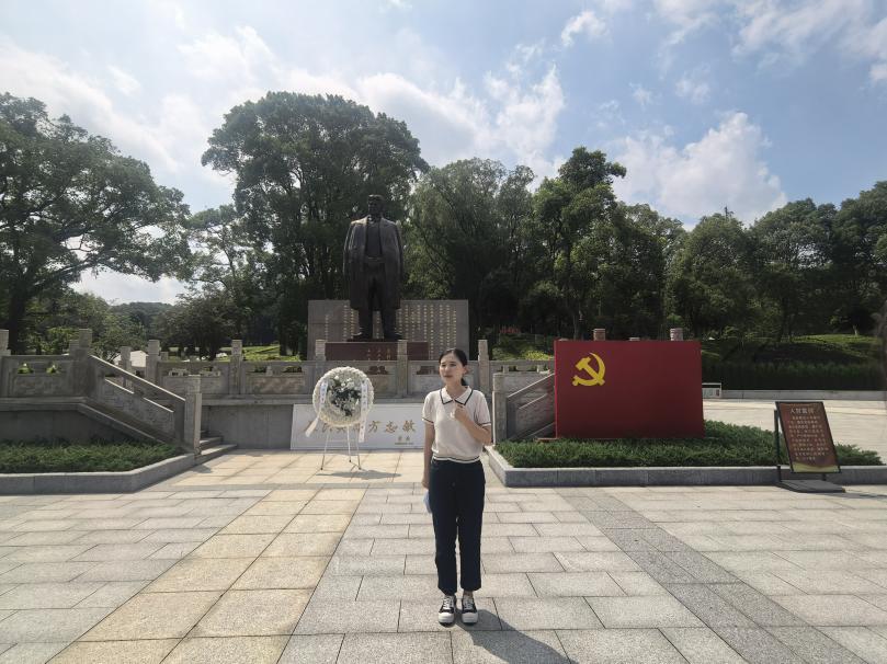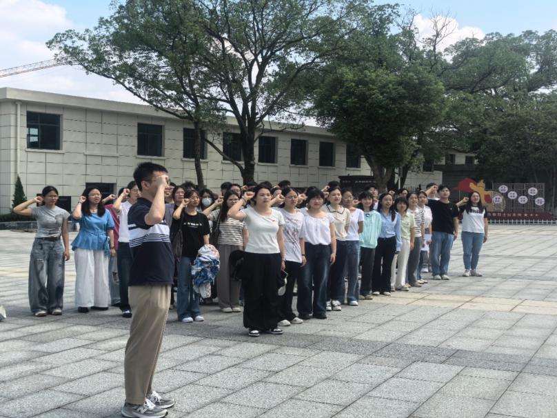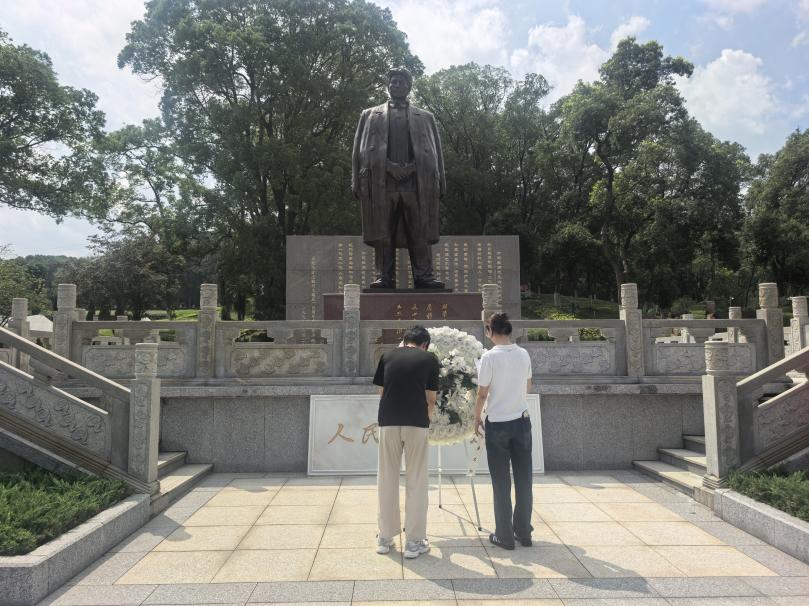 参观结束后,党员们移步至方志敏烈士铜像广场,全体人员肃立于方志敏烈士铜像前,敬献花篮寄托哀思。毕业生党员李嘉欣、杨葳上前整理挽联,以细致动作表达对革命先烈的崇敬之情。随后,在场人员面向铜像行三鞠躬礼:一鞠躬铭记先烈为民族独立的牺牲,再鞠躬传承其信仰至上的品格,三鞠躬立誓赓续红色血脉。