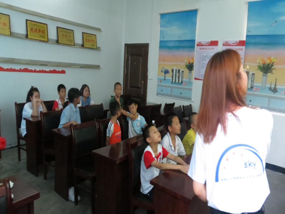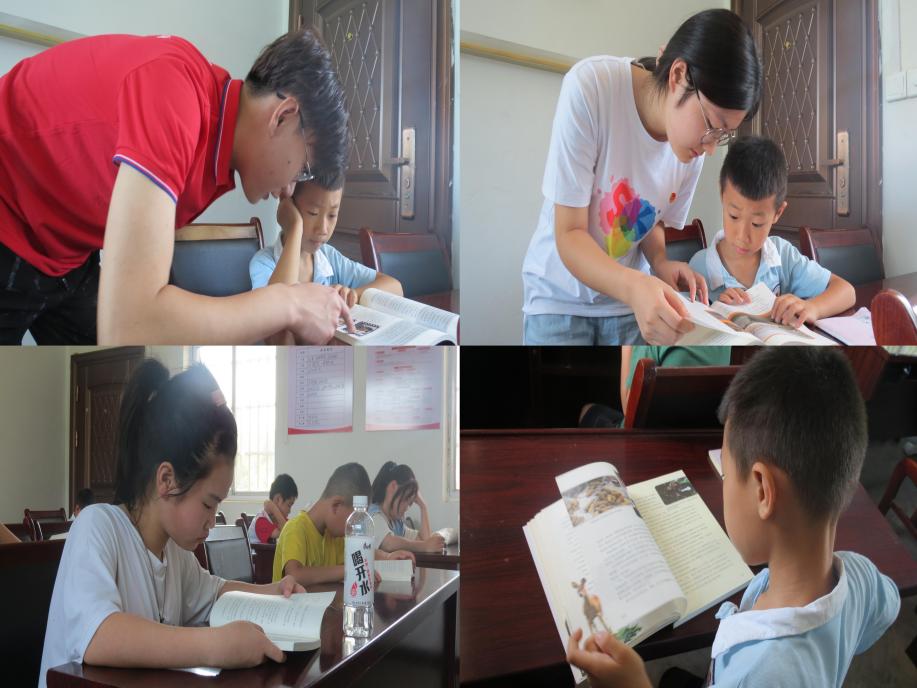 第一天的交流已经让团队成员和孩子们之间建立了深厚的感情,迎接团队成员走入教室的是九张灿烂的笑脸。“今天我们需要大家分开来坐。”实践团队成员秦寒同学主持着第一项课程——“阳光爱心-分享书籍”,“读书在这个浮躁的社会是一件很难得的事,希望大家可以放下手机,静坐一小时,感受读书的魅力。”实践团队精心准备了《十万个为什么》、《福尔摩斯探案集》、《走近科学》系列等十本书,涵盖丰富的科学知识和有趣的故事供孩子们选择。大家走上前,领走自己心仪的书,安静地阅读着。