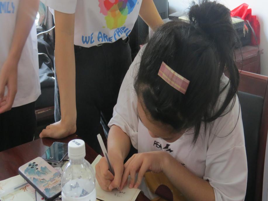 简单的讲解之后,李妍同学播放电影《头脑特工队》供大家观赏学习。孩子们被代表五种情绪的可爱人物深深吸引,沉浸在影片构筑的想象世界中。伴随着剧情的推进,五种情绪展示出不同协调平衡的方法,李妍同学适时加以介绍,使得孩子们留下更加深刻的印象。影片结束,每个孩子都得到了一份信封,大家在上面写上自己想说的话,尽情涂鸦,赠与自己或者身边重要的人。不少孩子都将信封递到了团队成员的手中,一声声老师成为这世间最温暖的话语。