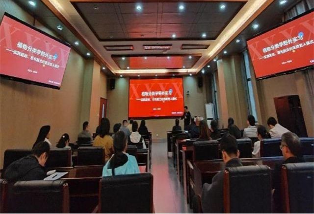 课程思政示范教学名师刘以珍老师以《植物分类学野外实习——实践驱动,思专融合的思政育人模式》为题,分享“AI识花+三色思政”课程思政教学改革经验。该模式以井冈山—九岭山“红绿”双线实地教学为载体,将红色故事、碳汇测算、传统文化有机融入“采集—识别—验证—上传”四阶实践链,有效提升了学生的学习体验与思想认同。实施以来,学生物种识别准确率达93%,课程思政认同度显著提升18%。