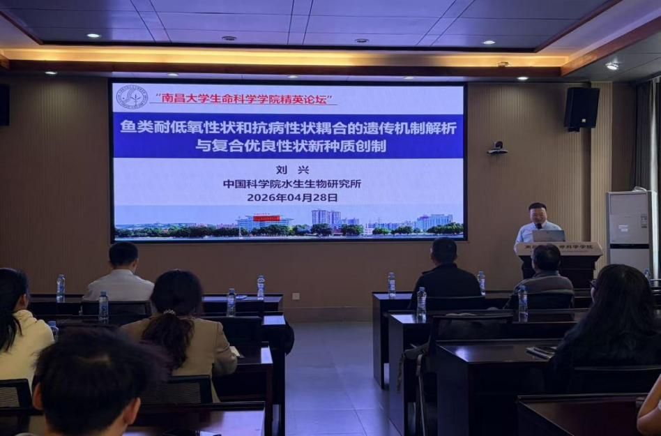 2026年4月28日上午,南昌大学庆祝办学105周年“学术活动月”暨生命科学学院精英论坛(2026年第七、八期)在前湖校区基础实验大楼A102A顺利举行。论坛由生命科学学院徐小文主持,特邀中国科学院水生生物研究所刘兴研究员和何利波研究员分别作专题学术报告。学院师生踊跃参与,现场学术氛围浓厚。