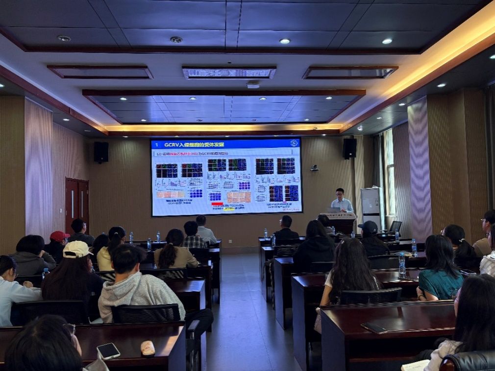 青年研究员何利波以“GCRV入侵、复制及免疫逃逸的分子机制”为题。从草鱼出血病病毒(GCRV)对水产养殖业造成的严重危害切入,指出该病毒导致幼龄草鱼死亡率超过80%,阐明其致病机制对于抗病育种具有重要意义。围绕“病毒-宿主互作”这一核心科学问题,何利波详细介绍了其团队在GCRV入侵、复制装配及免疫逃逸三方面的系统性研究成果。